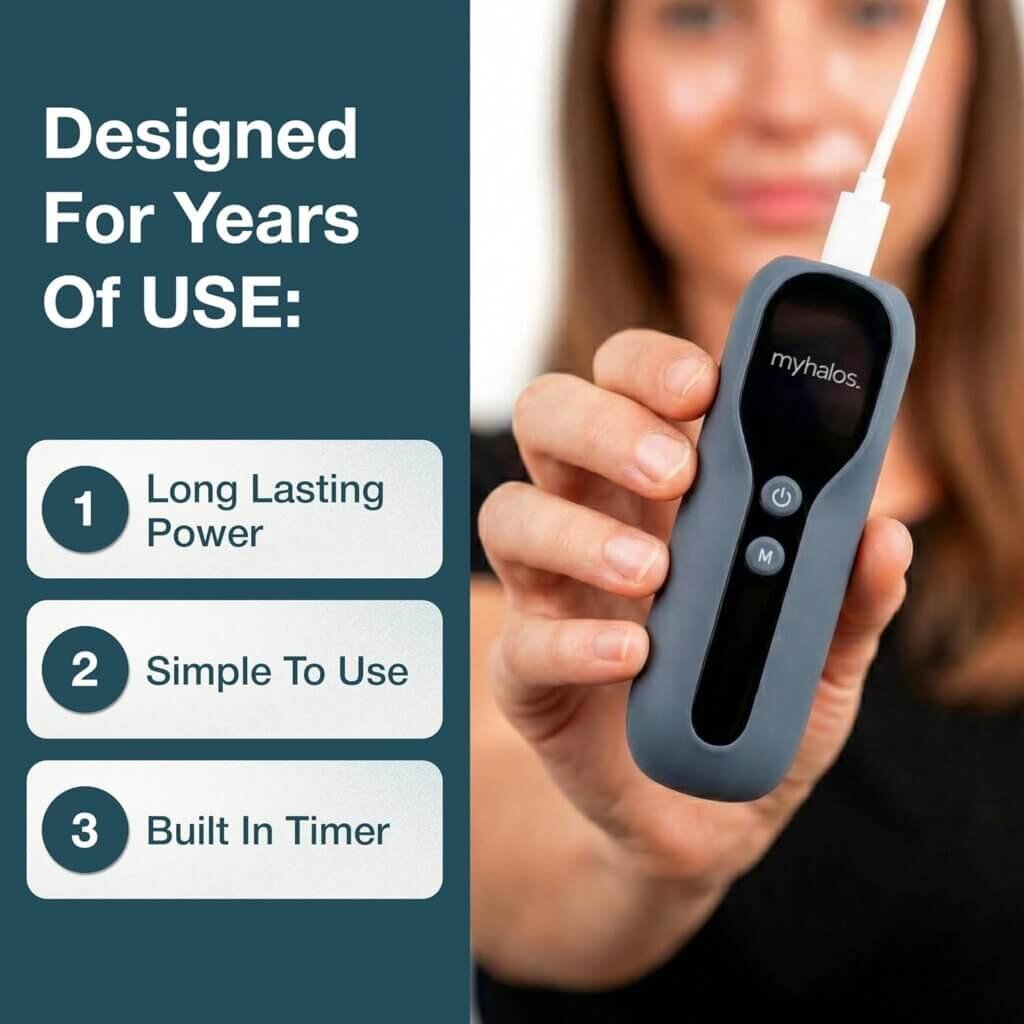 Moreover, this therapy has been used in dermatology clinics for years. Now, devices like the MyHalos mask make it accessible at home.