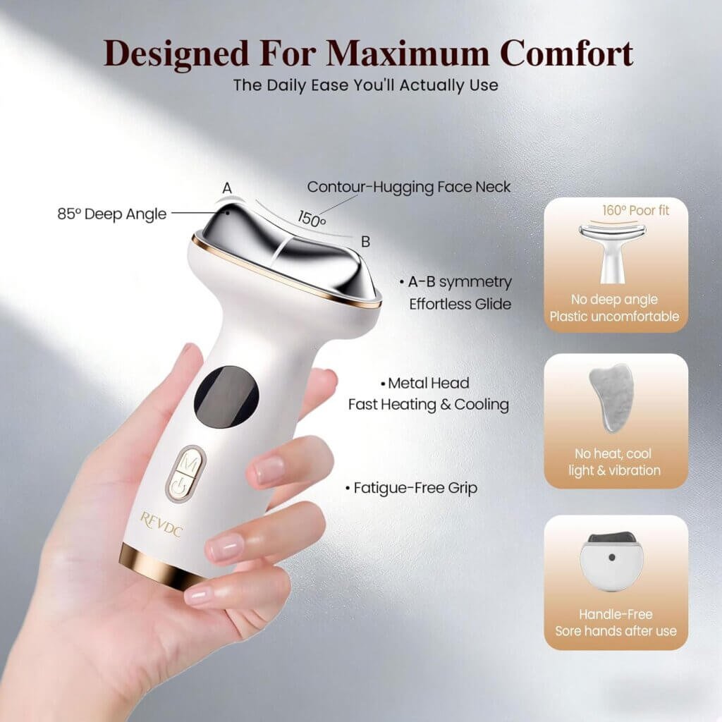 Transform your skincare routine with cold & heat facial massage, 7-color red light therapy, and gua sha tools. Lift, depuff, and firm your face and neck effortlessly.